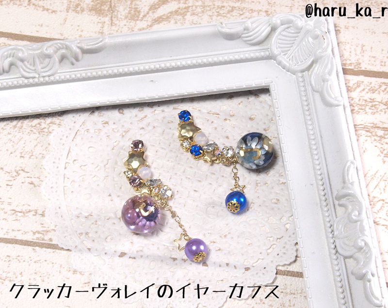 クラッカーヴォレイレジン玉をキラキラしたイヤーカフスにしました。